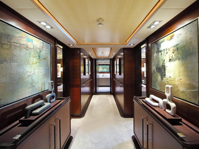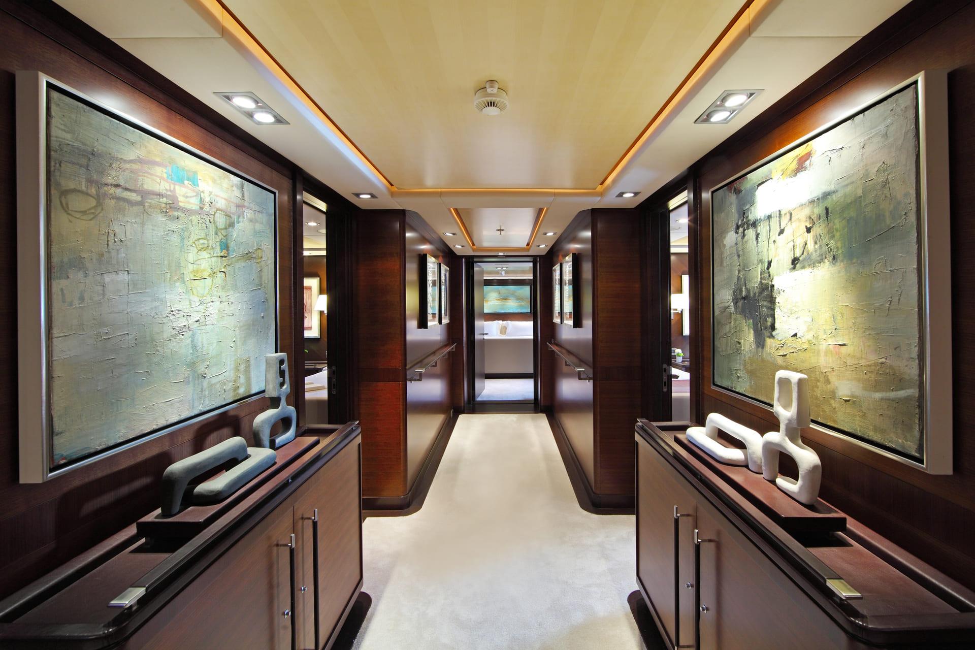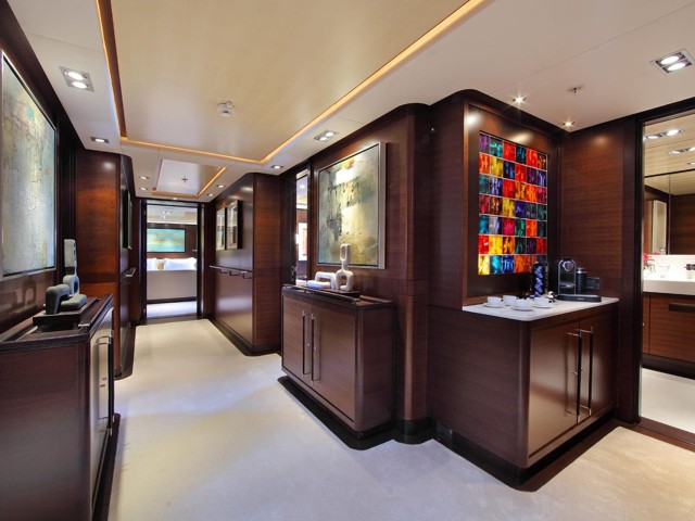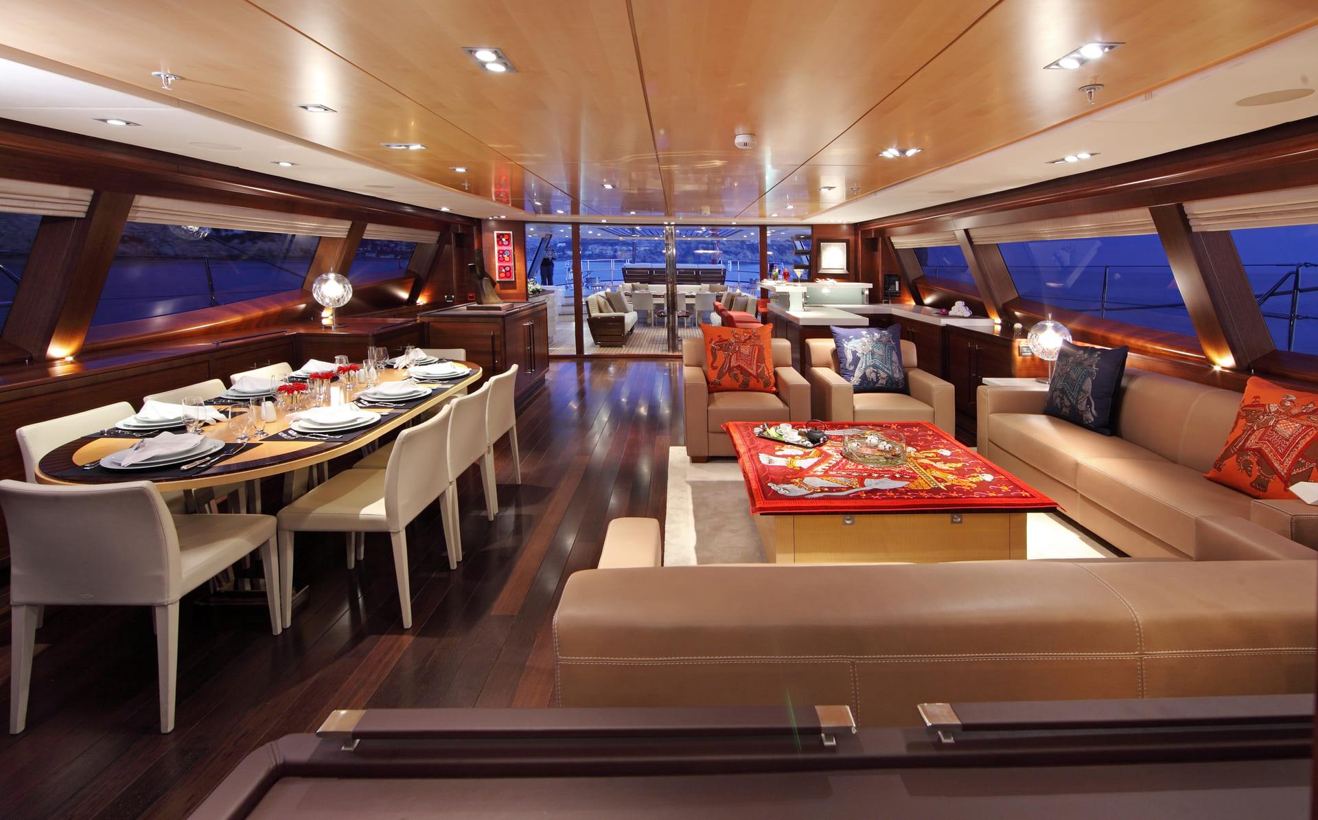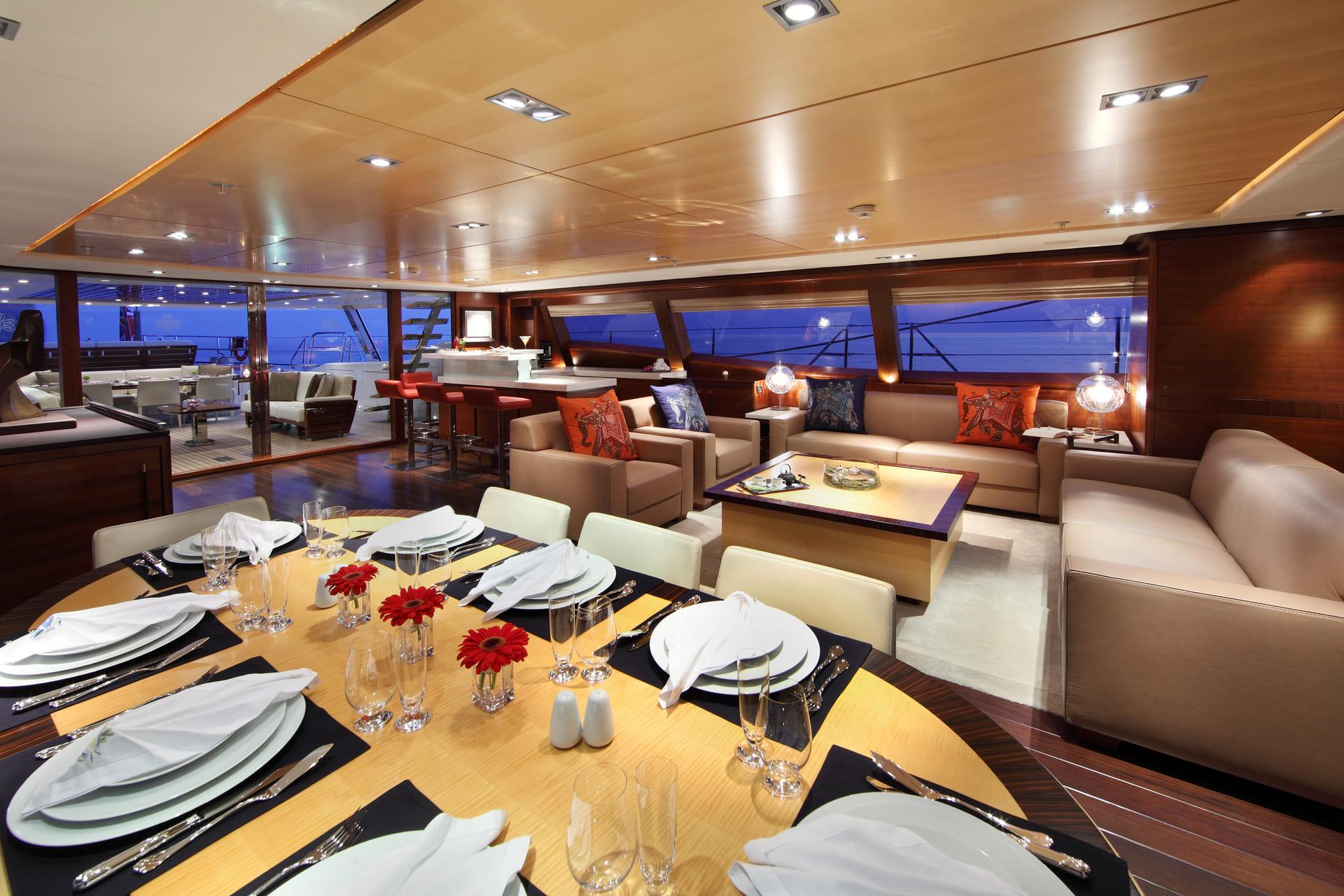Her interiors reflect a sophisticated balance of rich woods and light, modern furnishings, creating a warm and welcoming atmosphere. The main salon offers abundant space for relaxation or social gatherings, enhanced by a Plex movie server, Smart TVs, and iPad-controlled AV throughout. With its natural flow of light and thoughtful design, Prana’s interior invites guests to unwind in refined style.